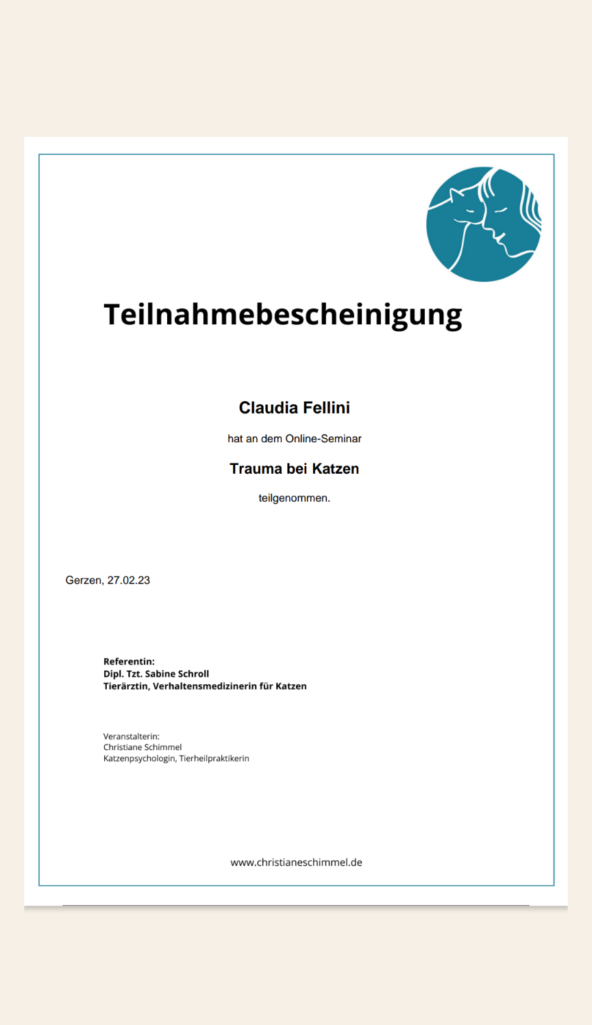 Seit 2016 arbeite ich mit Tieren in verschiedenen Bereichen. Zum einen habe ich einen Haustierservice, sodass ich jeden Tag mit lauter wunderbaren Tieren meine Zeit verbringen darf. Durch Streitigkeiten in der Katzengruppe bei mir zu Hause entschloss ich mich dann Katzenpsychologie zu studieren. Ich wollte unsere Probleme lieber selber in die Hand nehmen und dann mein Wissen und meine Erkenntnisse dazu nutzen, auch anderen Katzen helfen zu können.